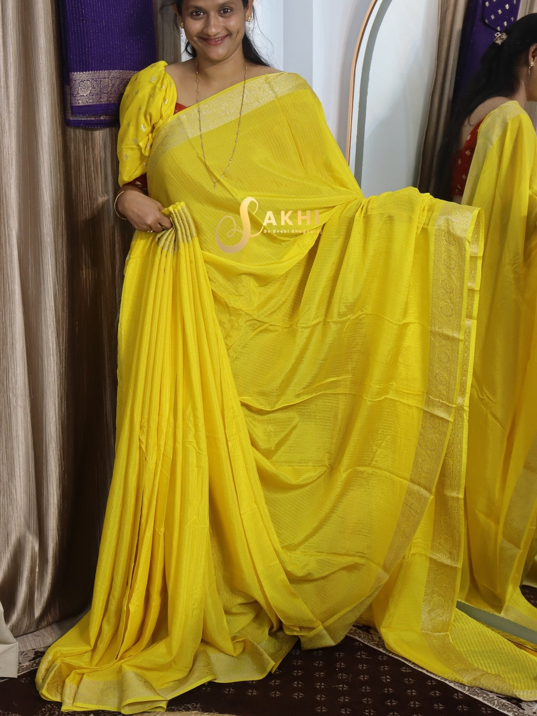 Fabric: Soft Chiffon Nature : Transparent and thin, Weightless fabric Blouse : running Color: Yellow,...