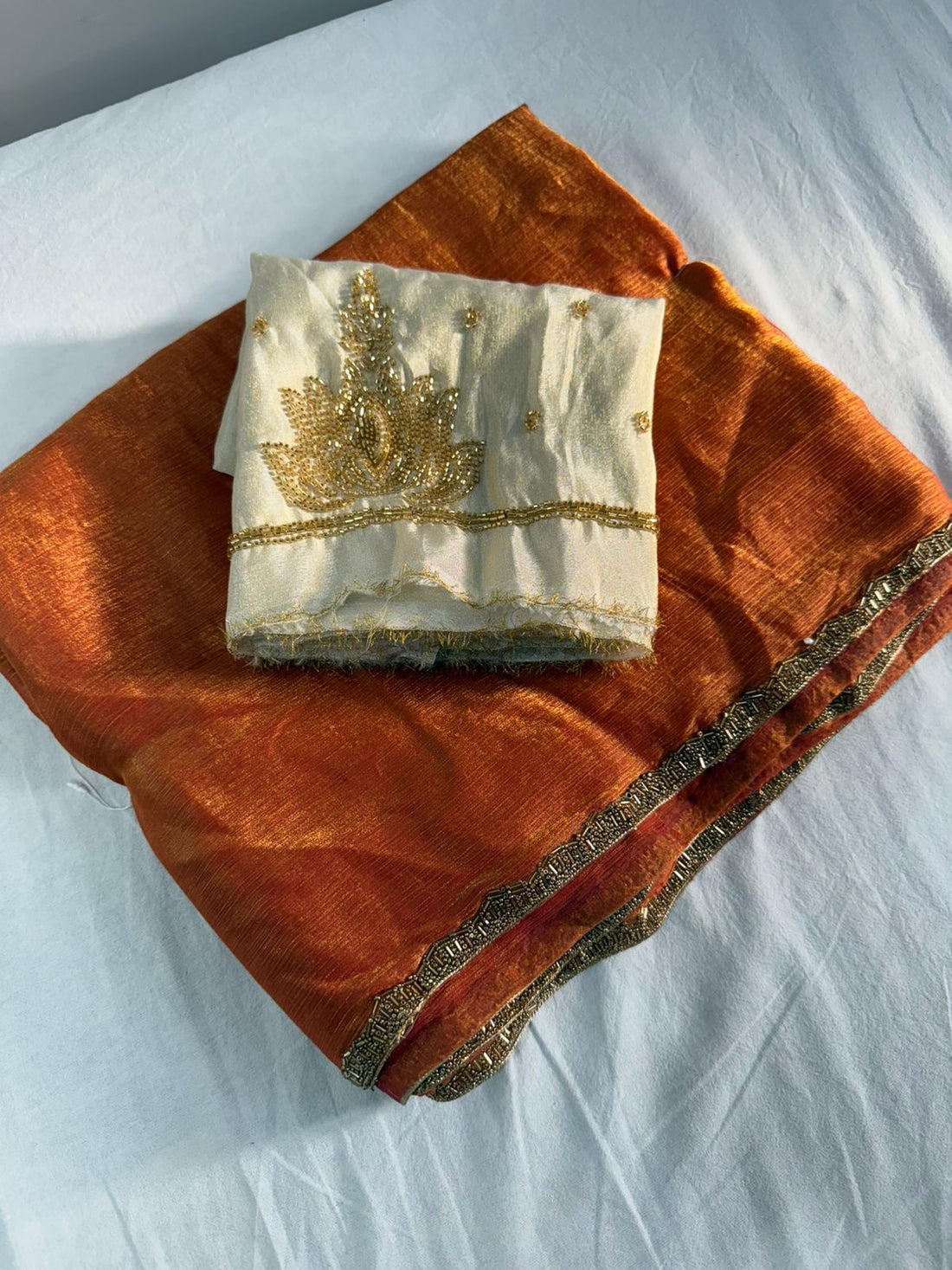 Space Fendy Chiffon Dual Shad Saree With Tissue Silk blouse which is customised Magam Work...