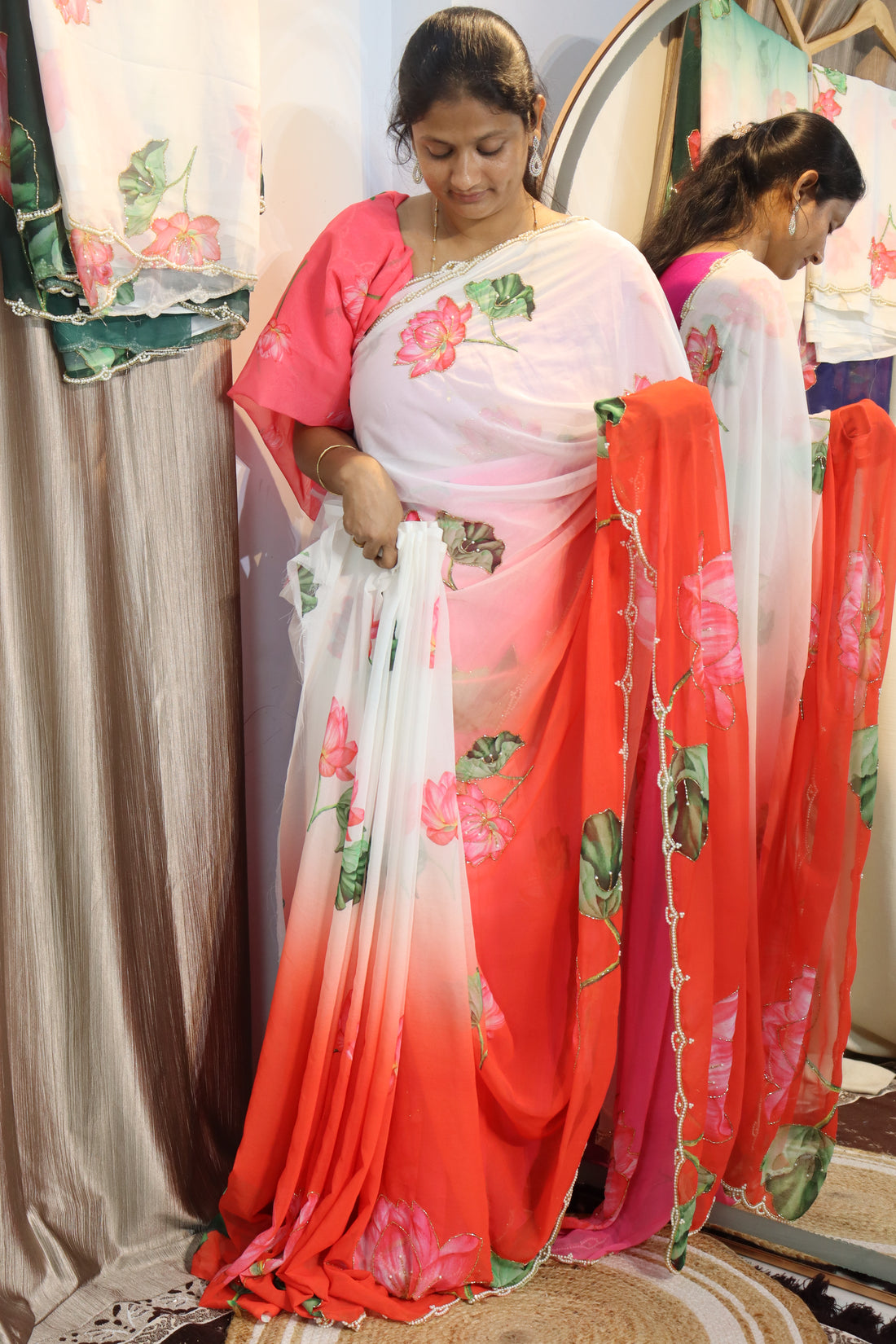 pure smooth georgette saree with hand work all over saree with cut dana and pearl...