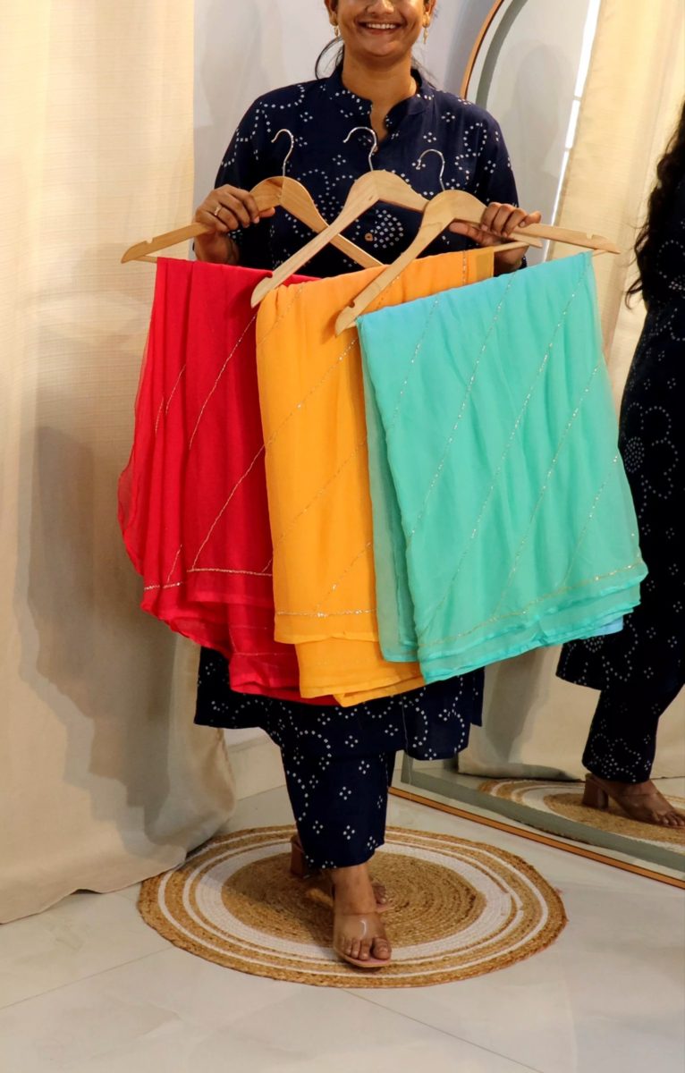 Fabric : Soft Kota checks Work : Handwork Length : 48 inch Lining : Micro...
