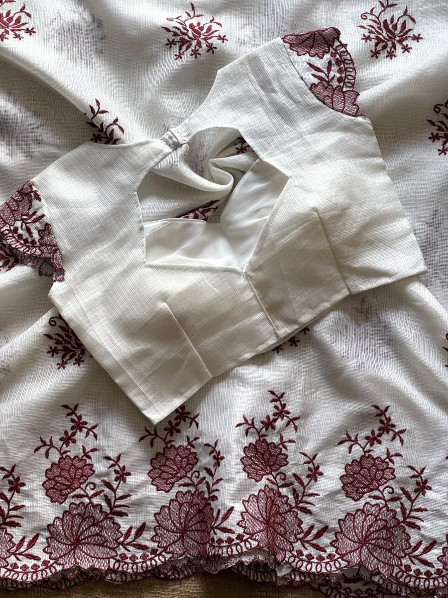 Pure Chinnon Floral Saree comes with digital printed floral work and highlighted with handwork all...