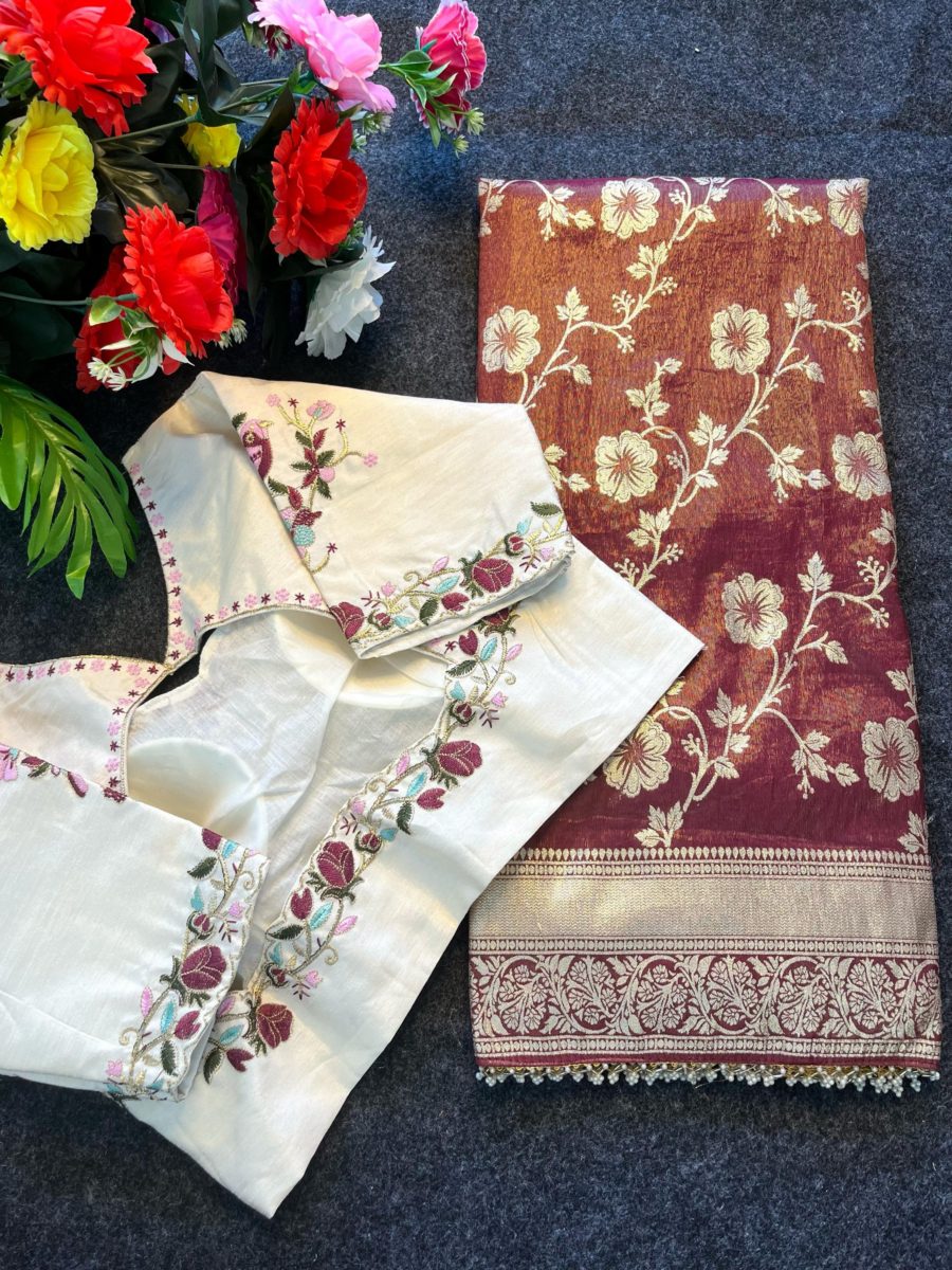Premium crunchy space silk saree with handwork & embroidery butties on all over the saree...