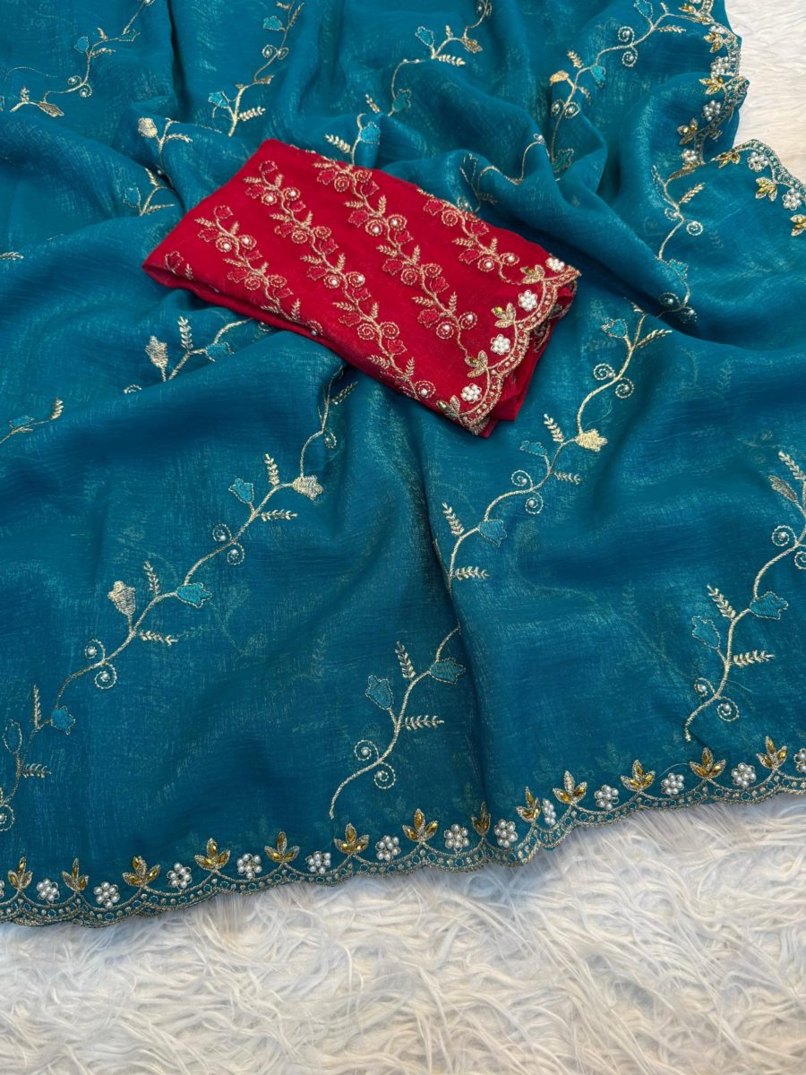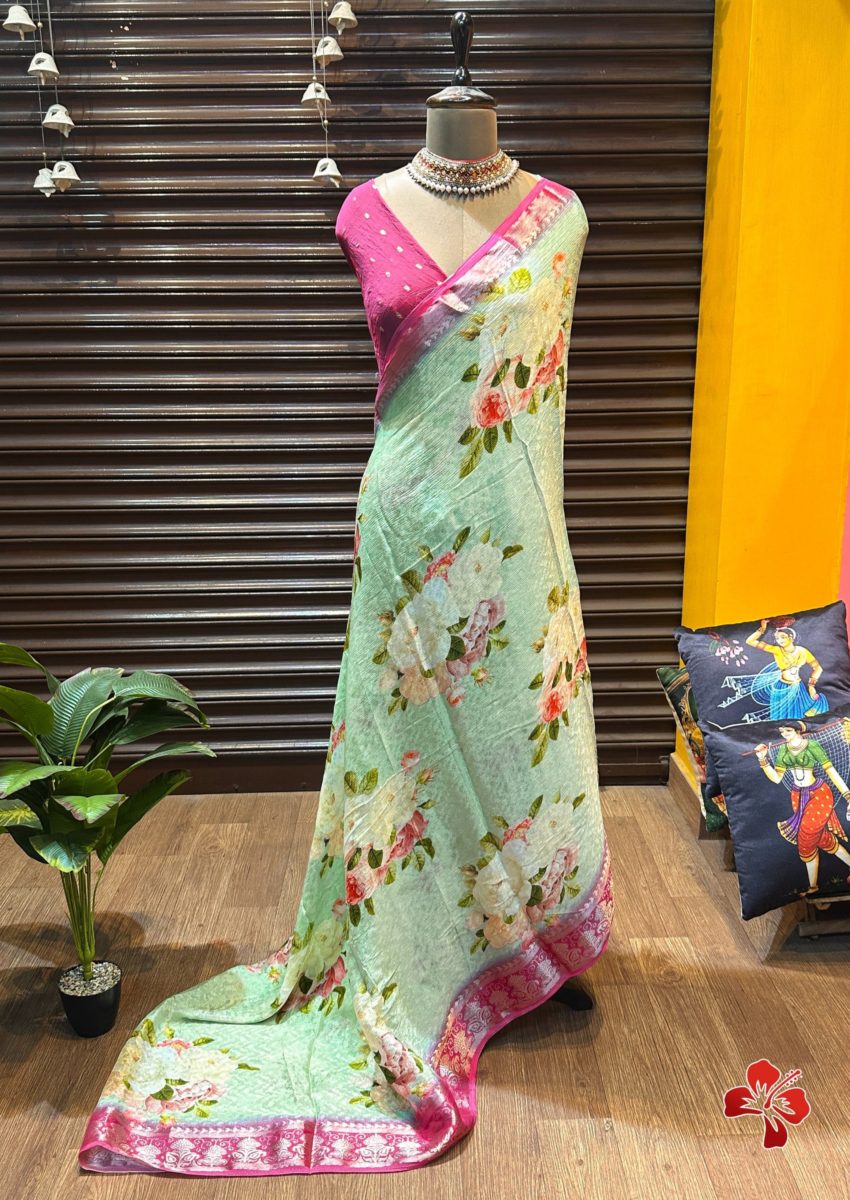Pure viscose Soft Crepe with Russian dola designer blouse Saree with trending jacquard border with...