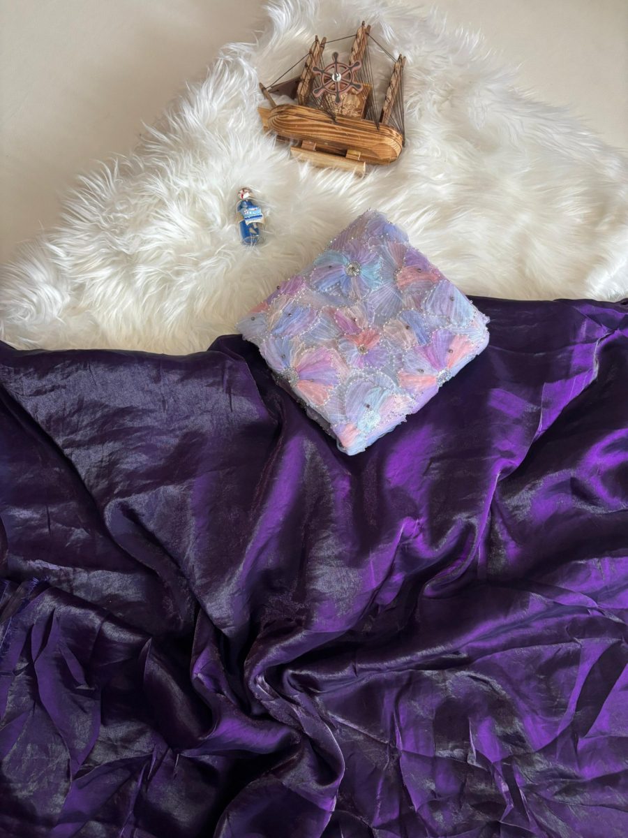 Gorgeous soft space Fendy silk in a two tone shine and teamed with a Pretty Soft Netted 3D floral Designed Blouse piece (Unstitched) *SAREE :* 5.5 Mtr *BLOUSE :* (0.80)mtr