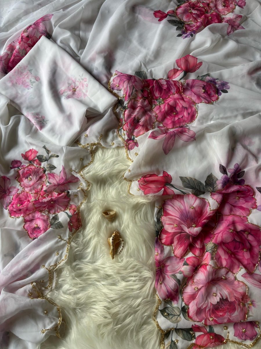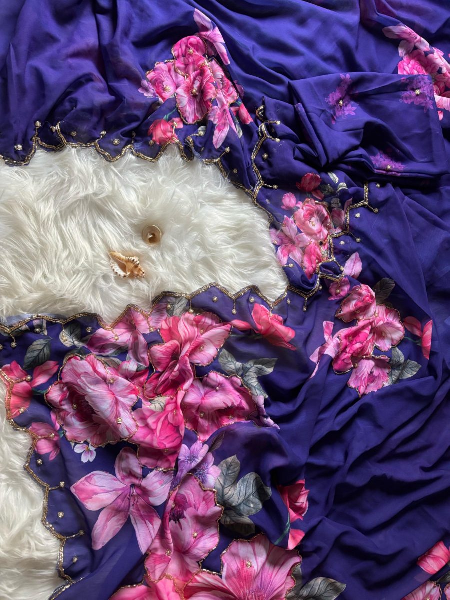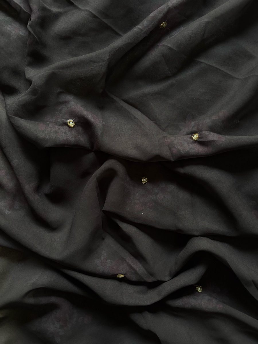 pure smooth georgette saree with hand work all over saree with cut dana and pearl work n all over cutwork on saree