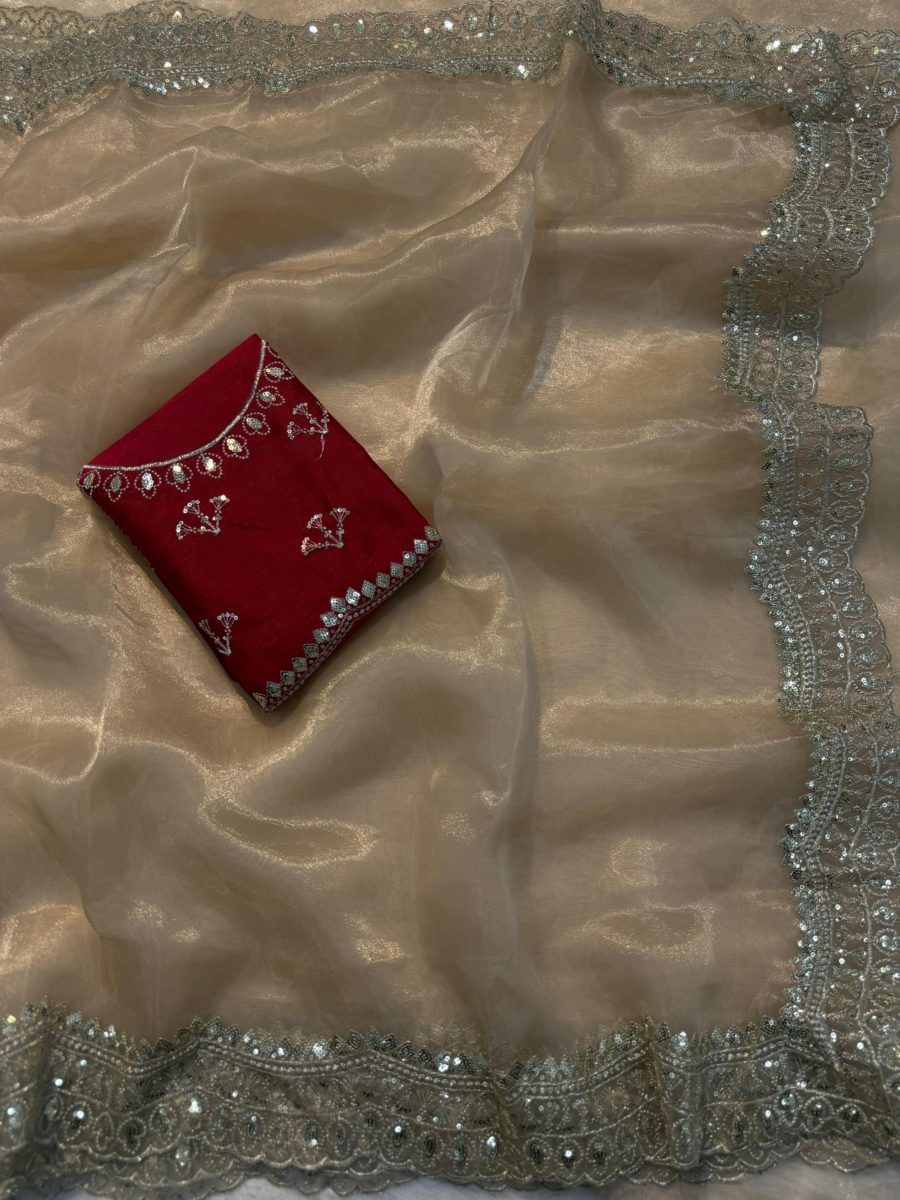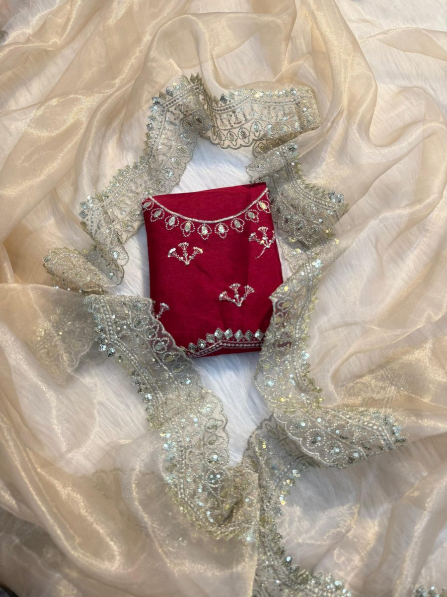 Ozy: Pure Bright organza silk with sequins embroidery work and satin banglori silk Unstitched embroidery work Blouse Piece π