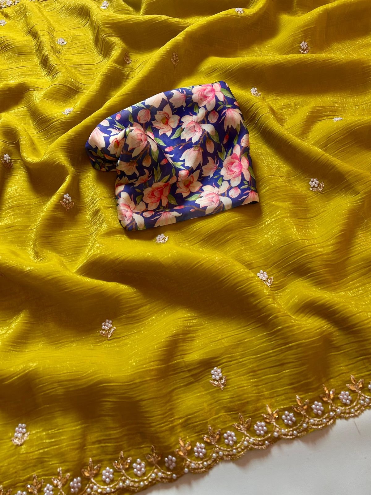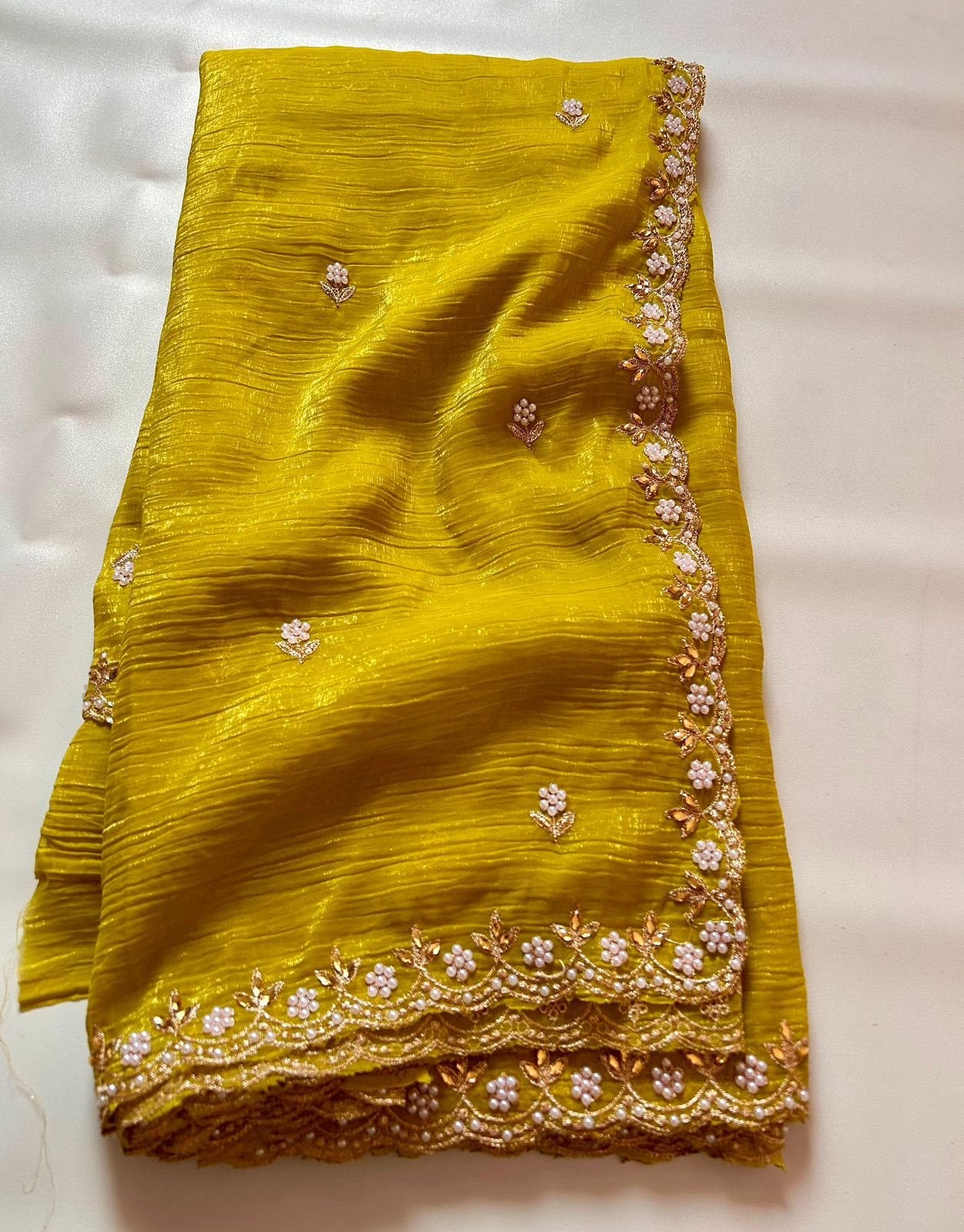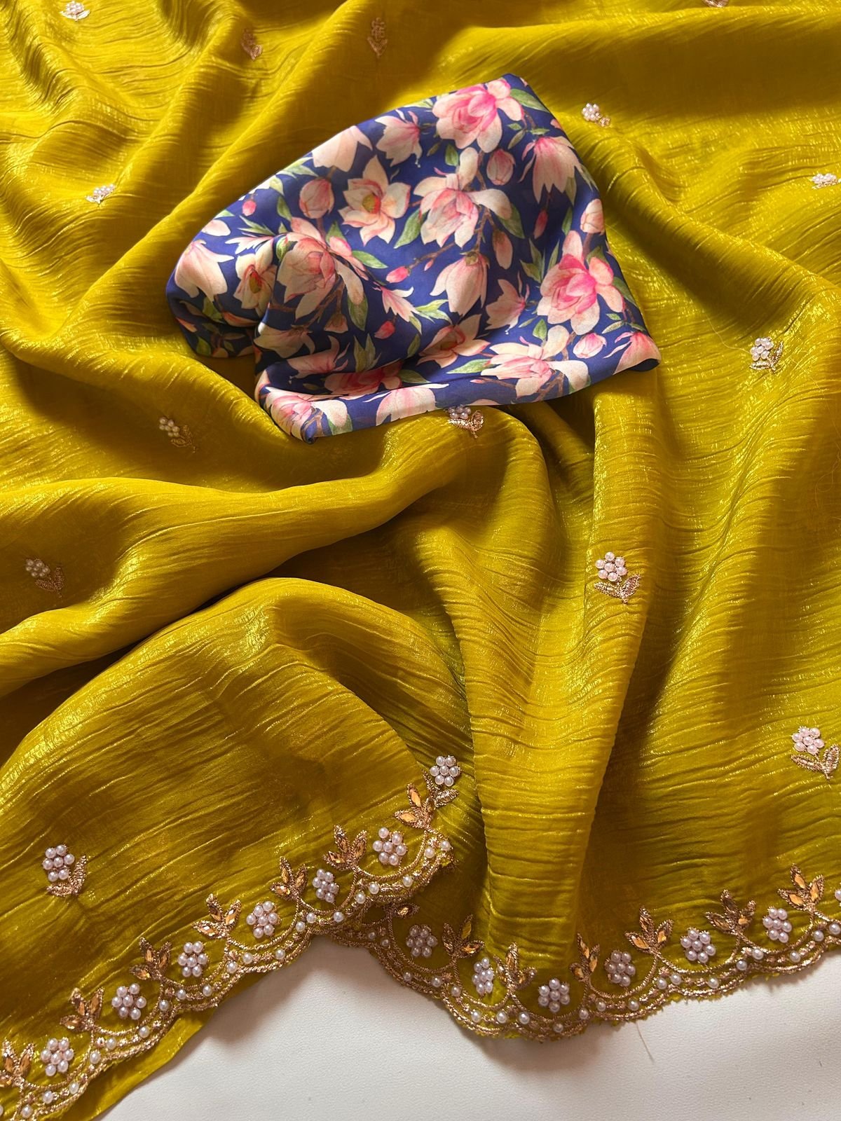 Space chiffon saree with embroidery work with real diamond with aarko bodar all over saree butty work and hevy satin shilk benglori digital print
