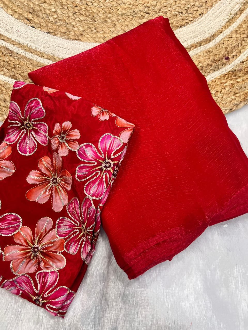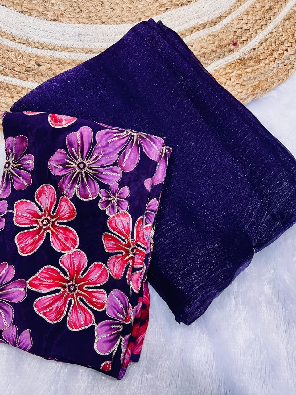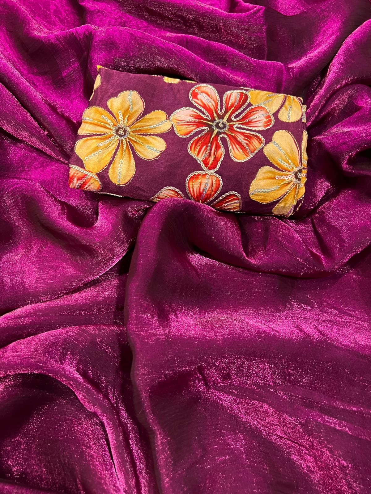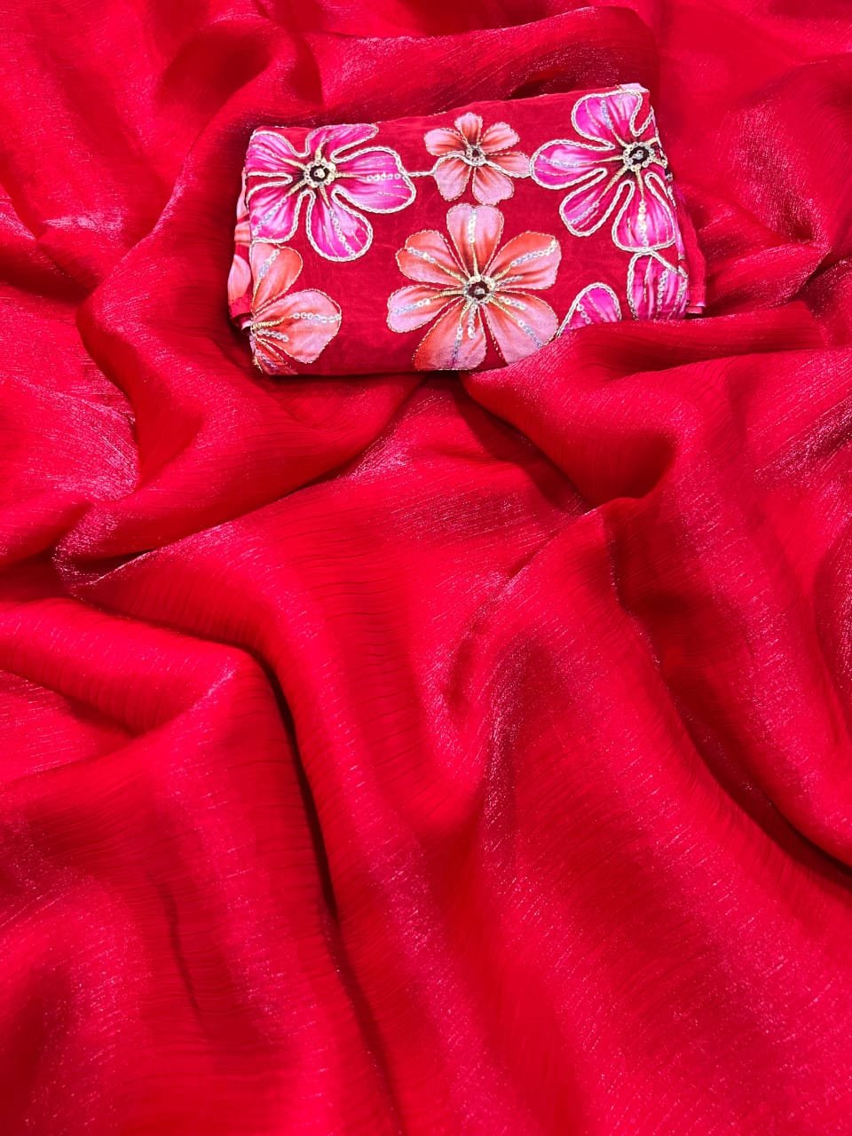 Gorgeous Space Chiffon Saree With Viscose Print Embroidery Work Blouse Piece π
