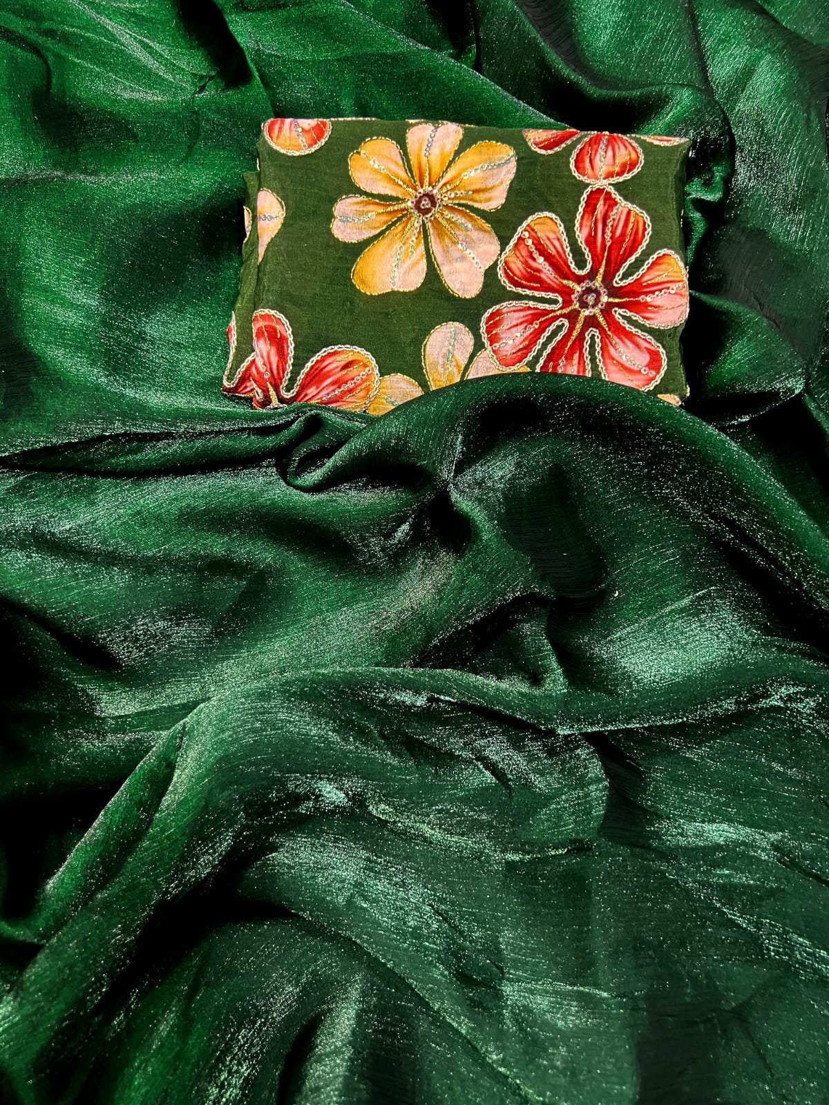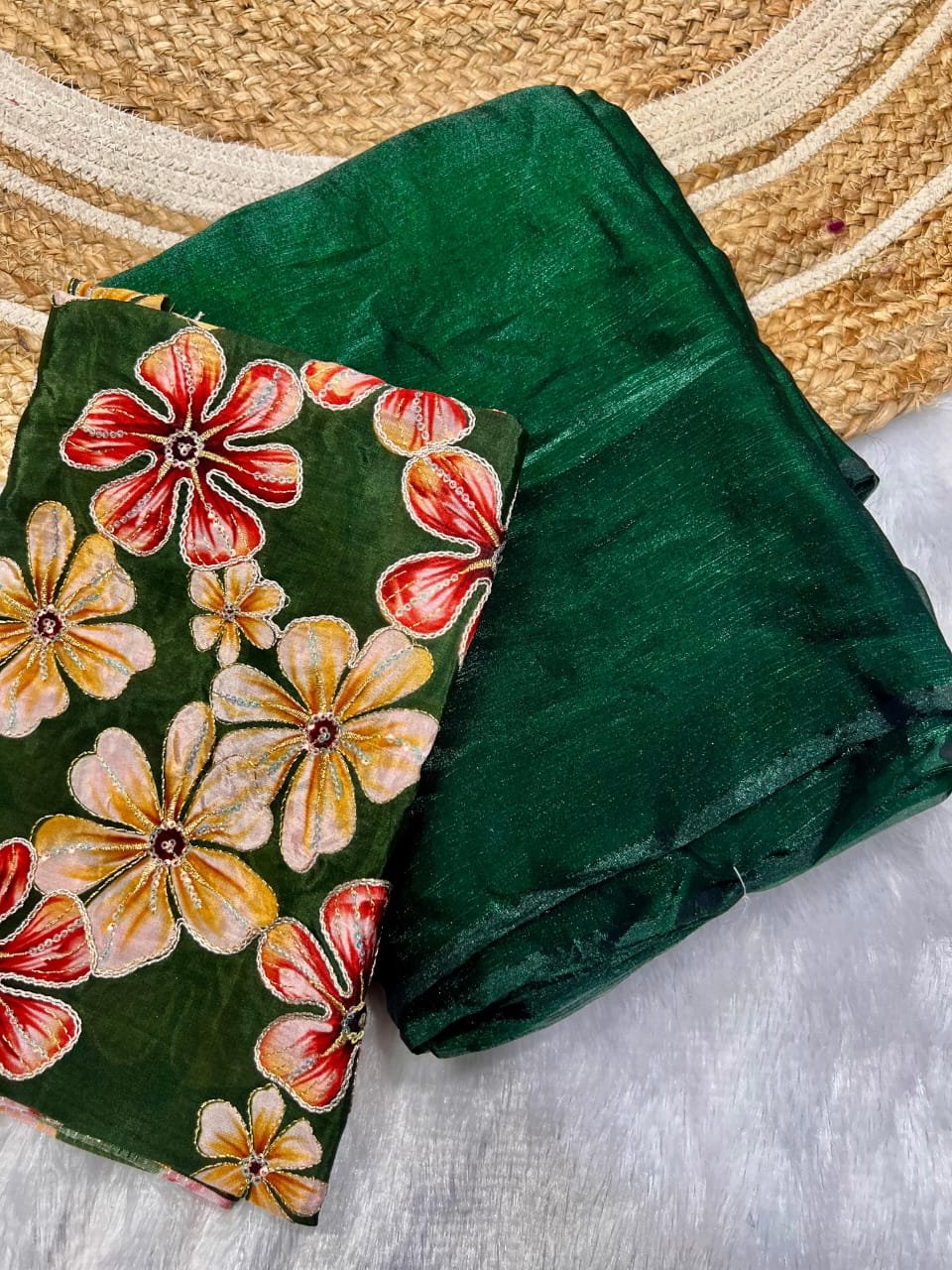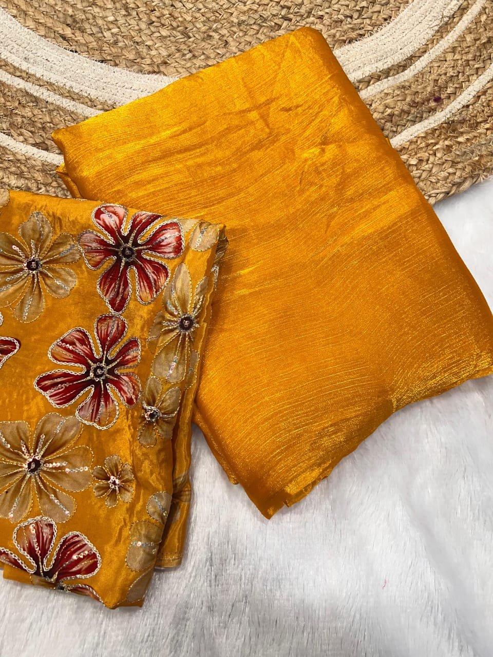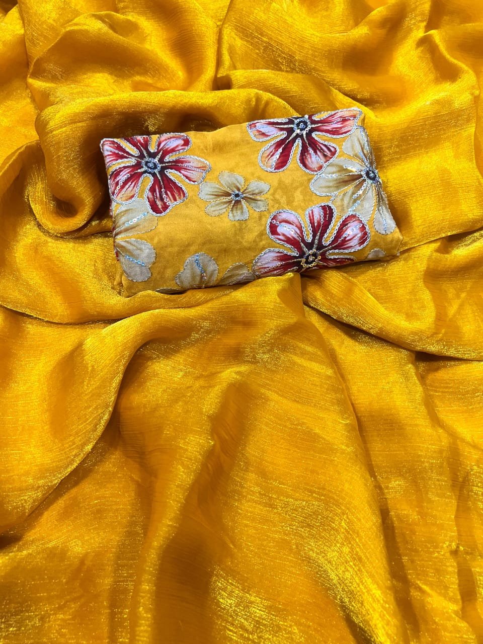 Gorgeous Space Chiffon Saree With Viscose Print Embroidery Work Blouse Piece π